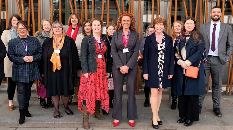 VoiceAbility advocates and clients gather outside Scottish Parliament